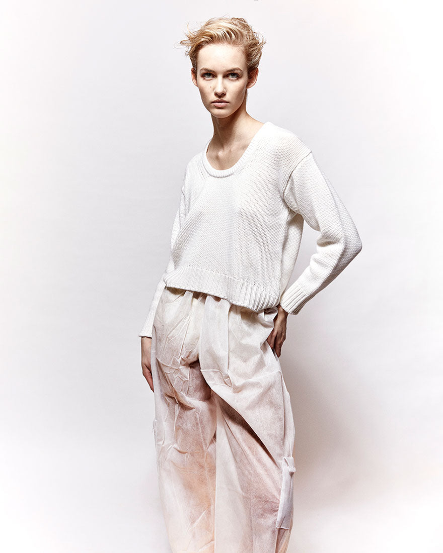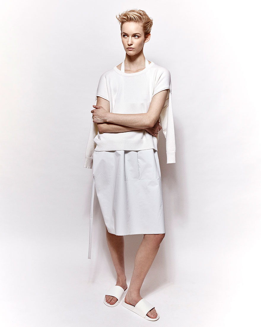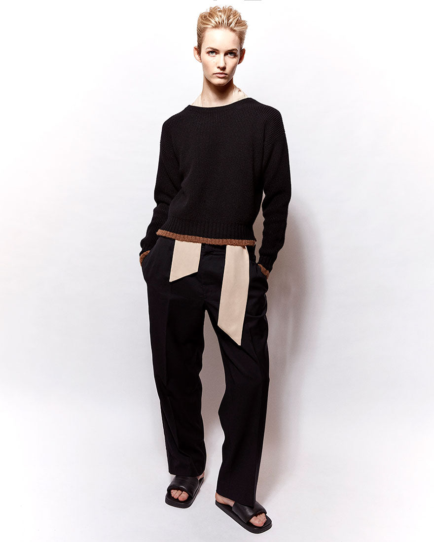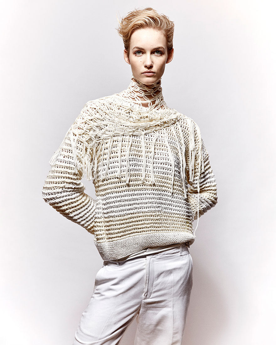 A need of softness, sensitivity and tactile delicacy is accentuated by the body’s lines. Each piece showcases meticulous craftsmanship, with delicate bustier - inspired datails adorning the knitwear, accentuating curves and highlighting the beauty of the body.