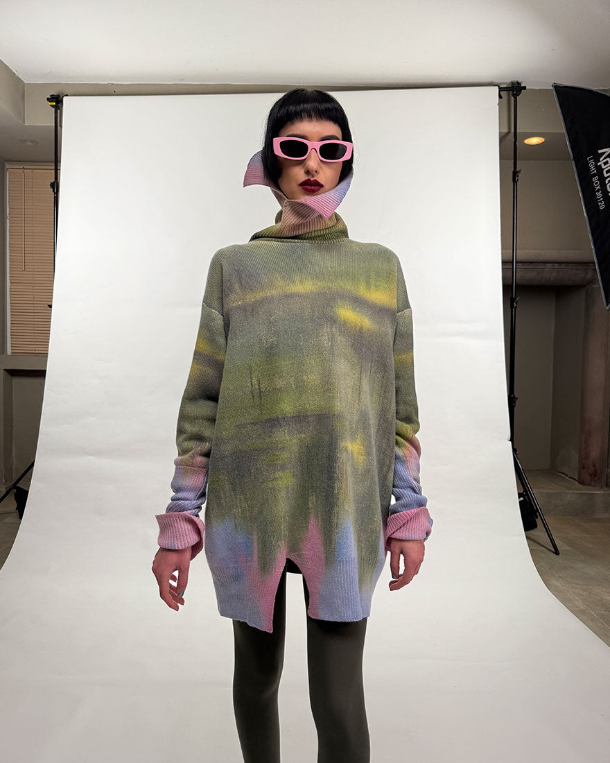 This dialogue between painting and knitwear translates into garments that explore authenticity.