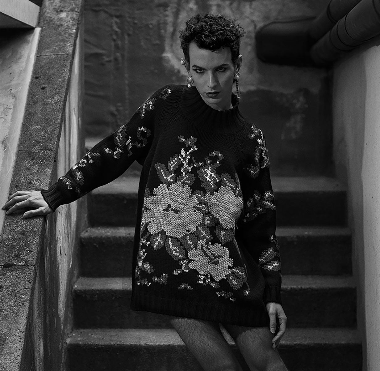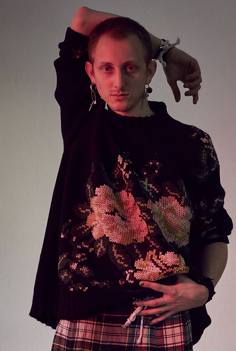 Cashmere sweater "small portuguese flower stitch"